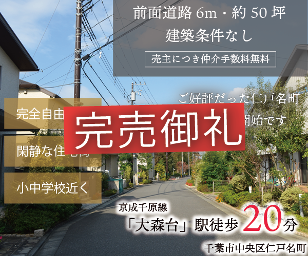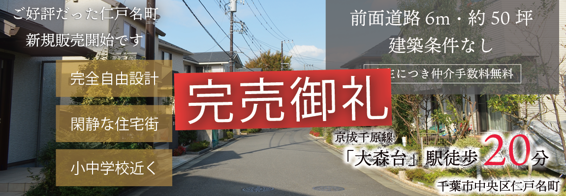 | 2025.7.25 | 千葉市中央区仁戸名町、お陰様で完売致しました! |